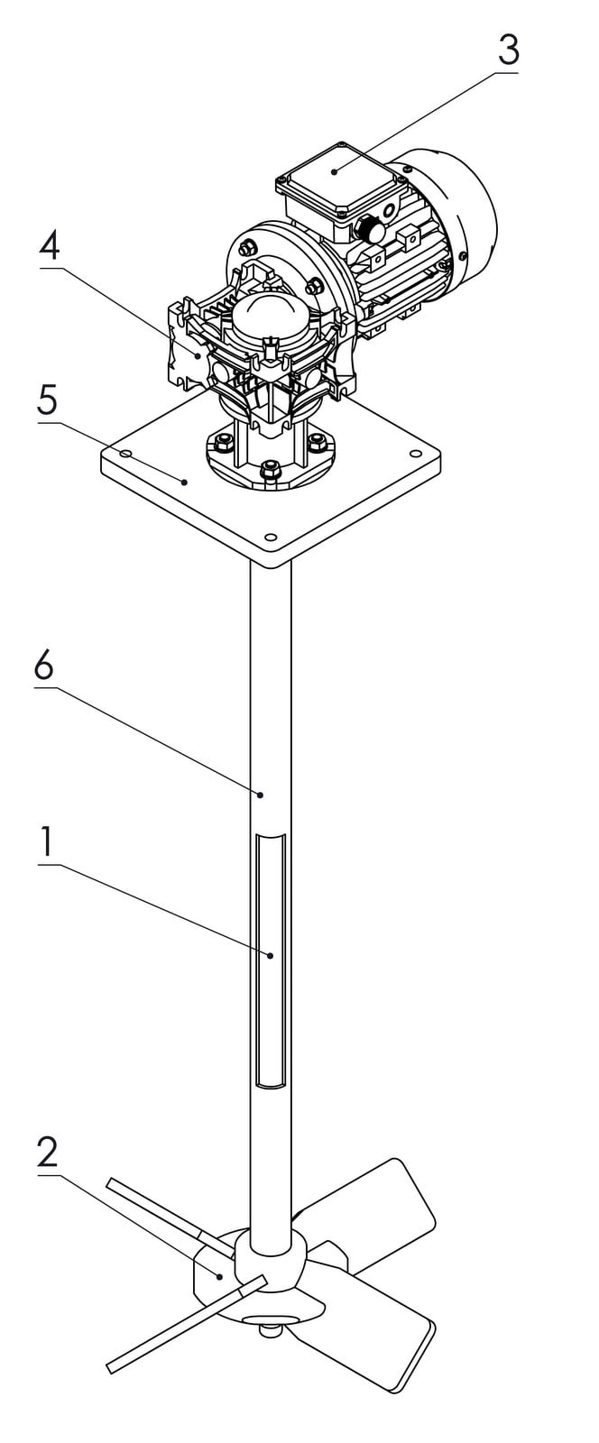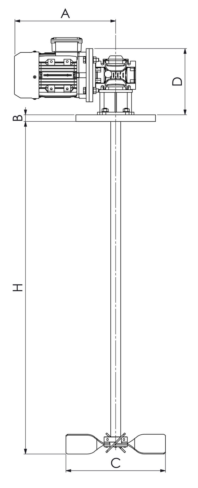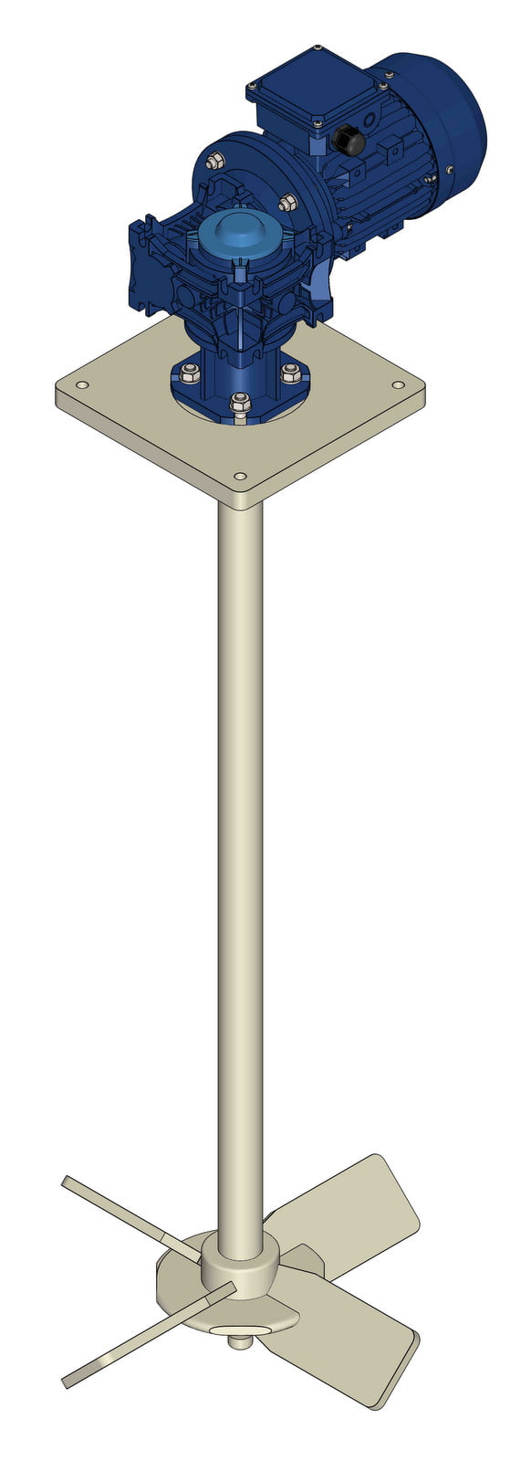 • Albero in acciaio AISI 304-316 o in C45 rivestito in PP, PVC o PVDF, calettato direttamente al riduttore