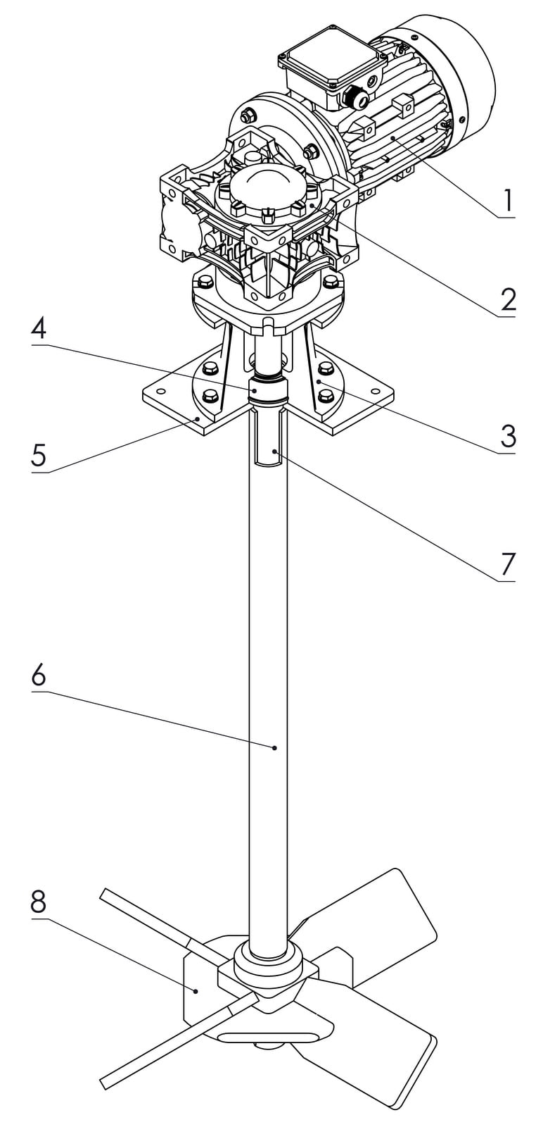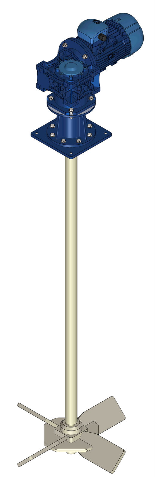 • Albero in acciaio AISI 304-316 o in C45 rivestito in PP, PVC o PVDF, calettato direttamente al riduttore