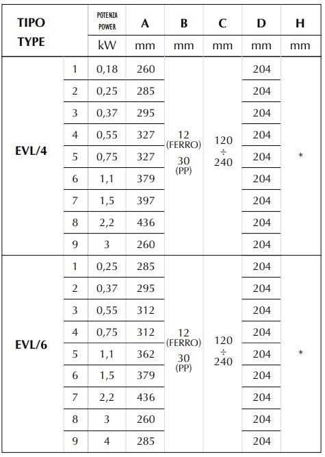*In base all’altezza del contenitore o serbatoio