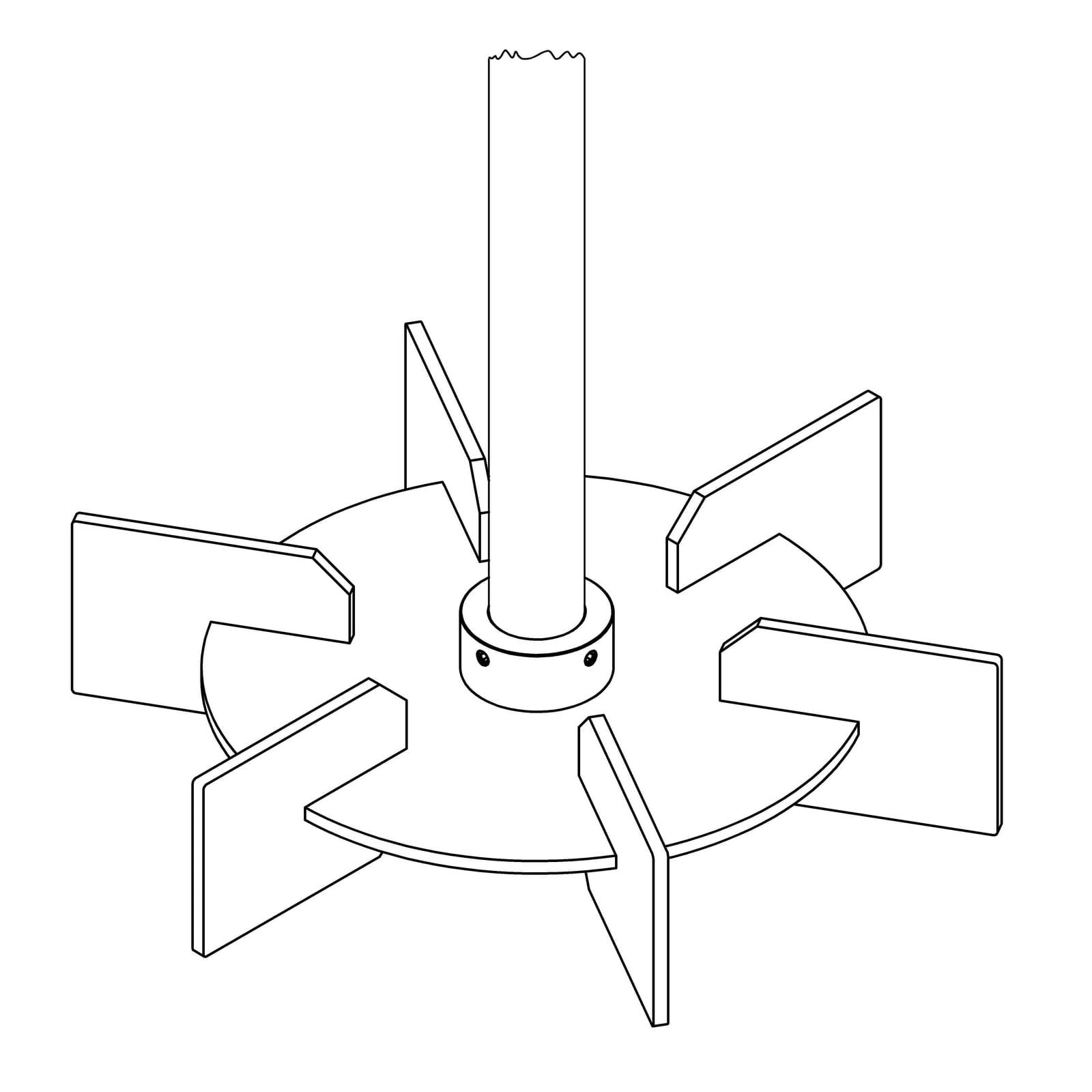 Girante elica tripala marina, turbina a pale diritte, emulsionatrice, cowless, in acciaio AISI 304-316 o in PP, PVC o PVDF.