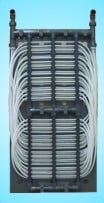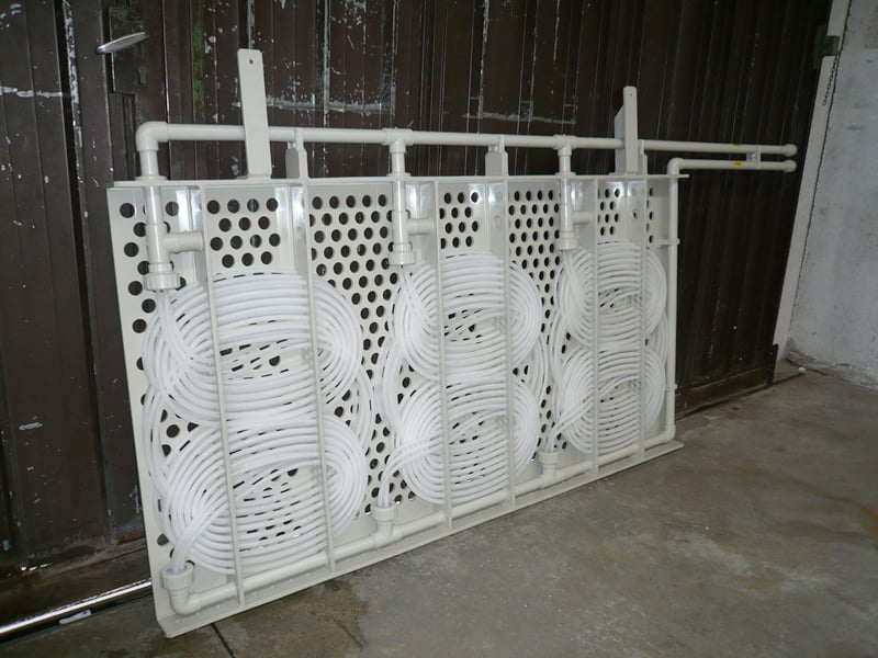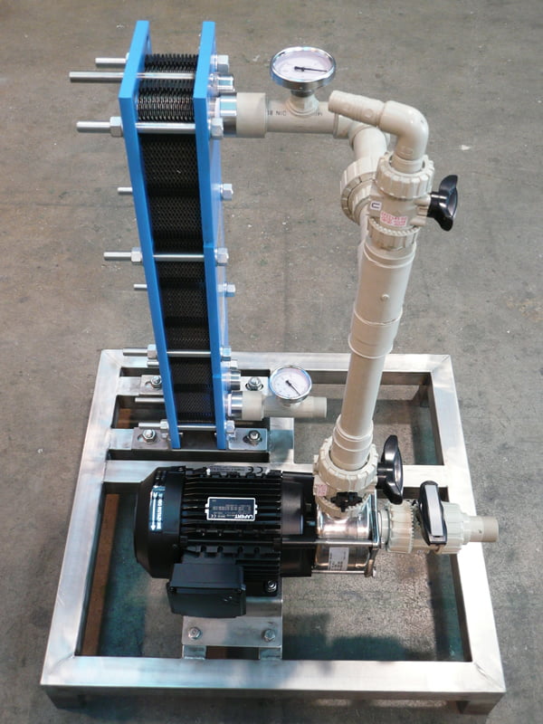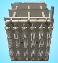 Scambiatori di calore in materiale plastico. Realizzazioni a disegno eseguite in conformità alle richieste tecniche del cliente. Esecuzioni in PP, PE, PVDF e PVC per il riscaldamento ed il raffreddamento dei fluidi.