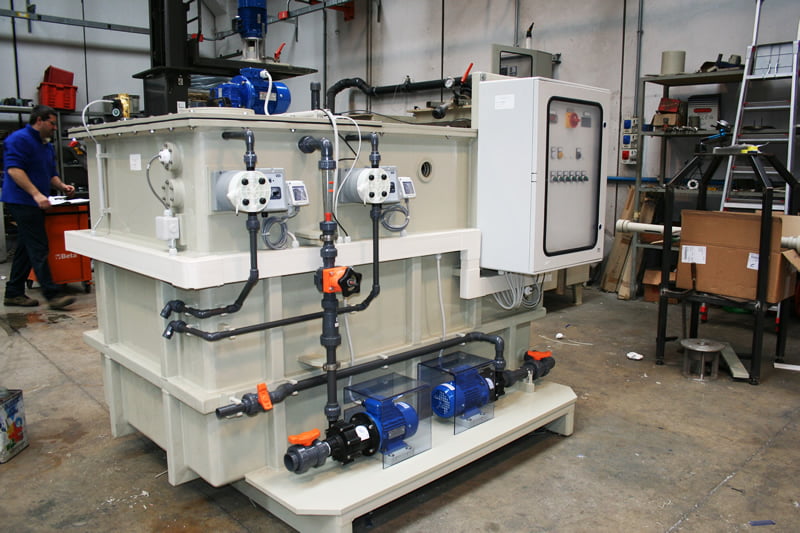 Oltre alla fornitura dei singoli componenti progettiamo e costruiamo impianti completi per il trattamento sia di prodotti chimici che di acqua. Questi tipi di impianti vengono montati su skid, progettati e costruiti su specifiche necessità del cliente, possono essere realizzati con telaio sia in acciaio inox che in ferro verniciato o rivestito in materiale plastico. Completi di pompe, serbatoi, vasche, agitatori, filtri, scambiatori ed impiantistica ed a richiesta di quadro elettrico.